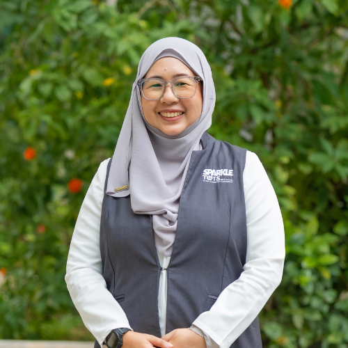 Ms Norfaezan sparks children’s curiosity in Malay through discovery and play, blending language learning with areas like numeracy and world discovery. She encourages independence, creating environments where children explore topics like animal habitats through hands-on activities such as dioramas. Through her dedication, she nurtures not just language skills but a lasting love for learning.